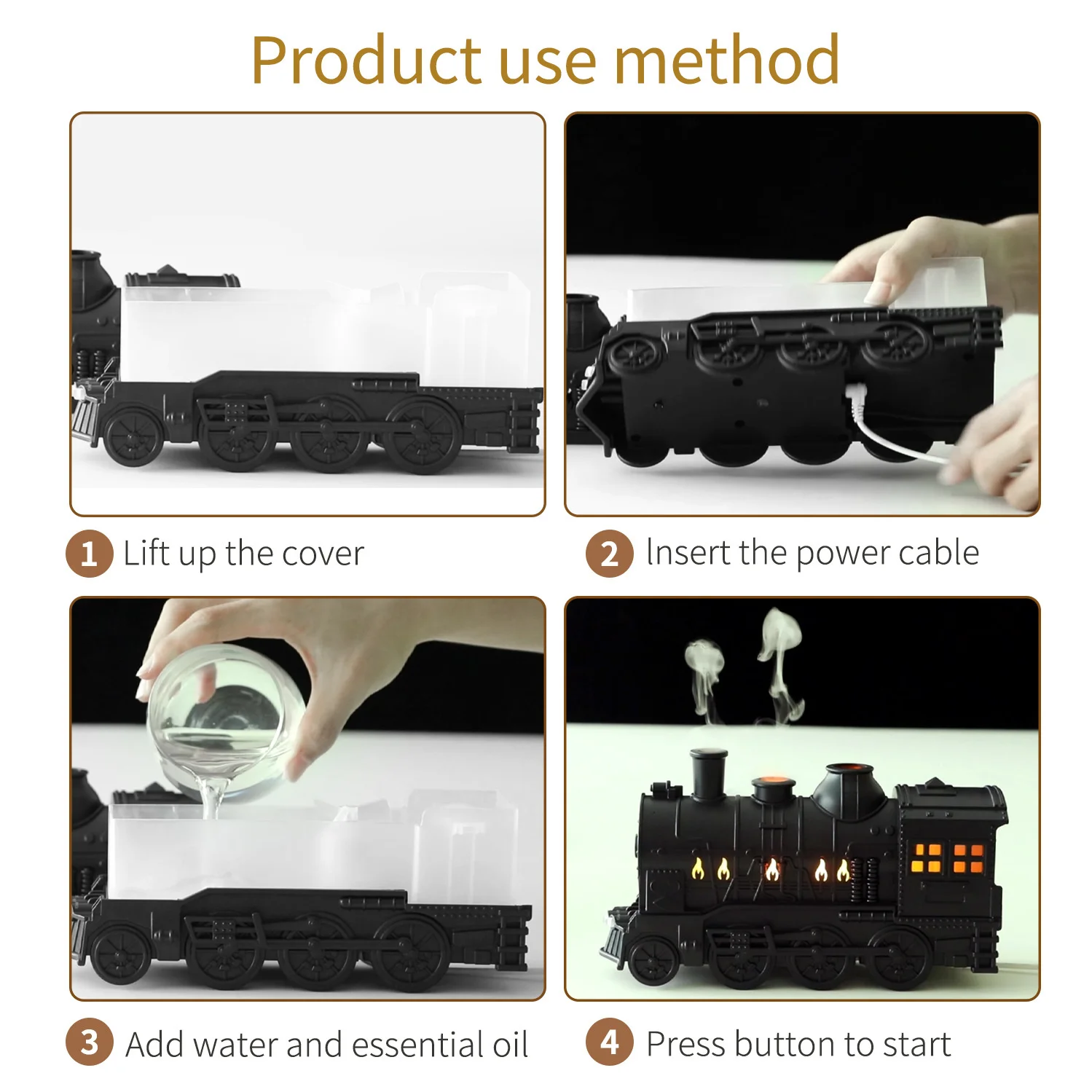 Mini Train Shape Aromatherapy Essential Oil Diffuser Ultrasonic Cool Mist Air Humidifier with LED Lamp Aroma Difusor Atomizer